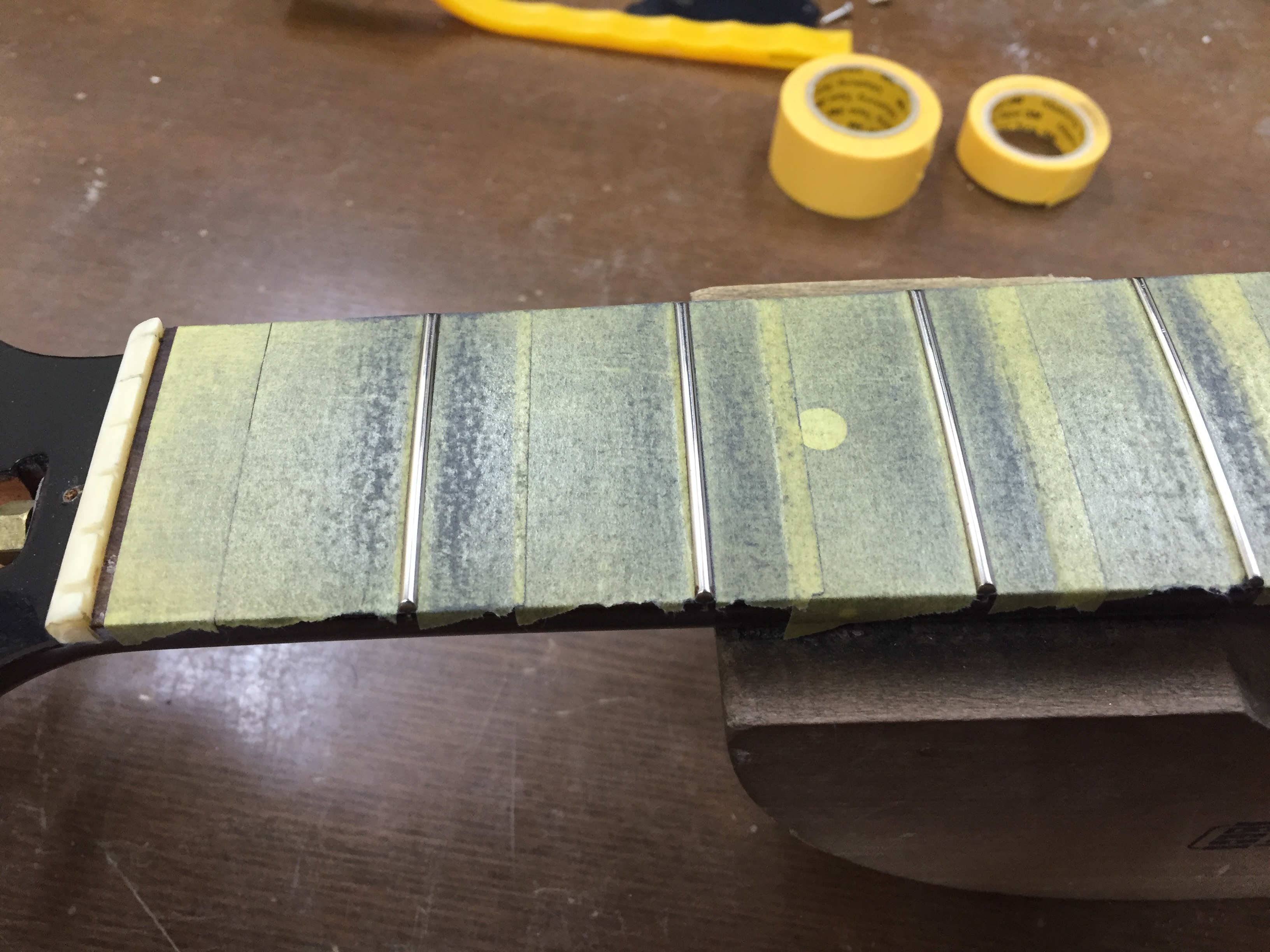 そして最後は、 12フレット6弦で2.5mm、1弦で2.0mm前後に仕上げ、大変弾き易く良いギターに仕上がりました!!!(‘◇’)ゞ